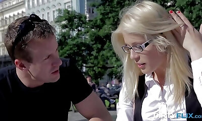 Nerdy blonde in glasses Nancy Ace turned to be nasty and insatiable lady