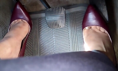 Lewd light haired Milf with big rack gets rid of heels to display soles