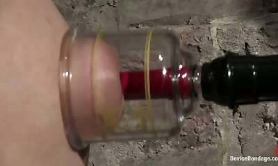 While being plumbed with fuck-fest machine kinky brunette gives BJs to masters