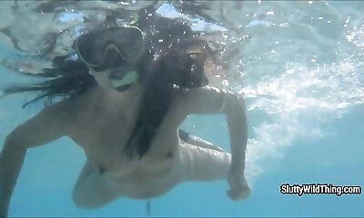 Russian swimming babe Lina Mercury demonstrates striptease under the water