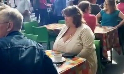Fat chubby housewife with big natural udders at public EroCom Appointment pick up with facial