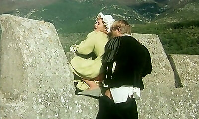 Super-naughty lord catches and gropes hot ash-blonde lady in his castle