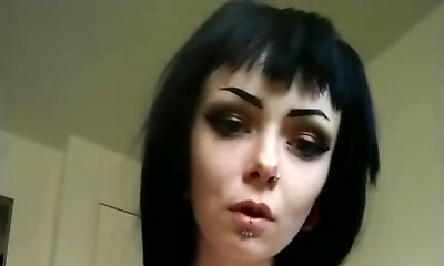Incredible brunette European goth chick on webcam masturbating