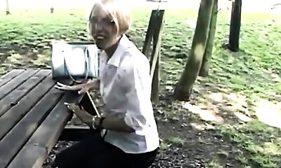 Ash-blonde hirsute granny outdoor anal