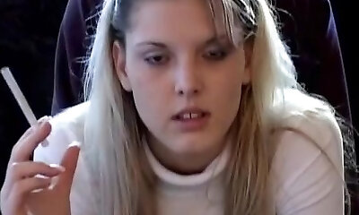 Naughty Blonde Entices A Hot Fellow And Smokes While Giving He