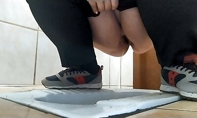 White amateur girl with pale skin culo pisses in the toilet room
